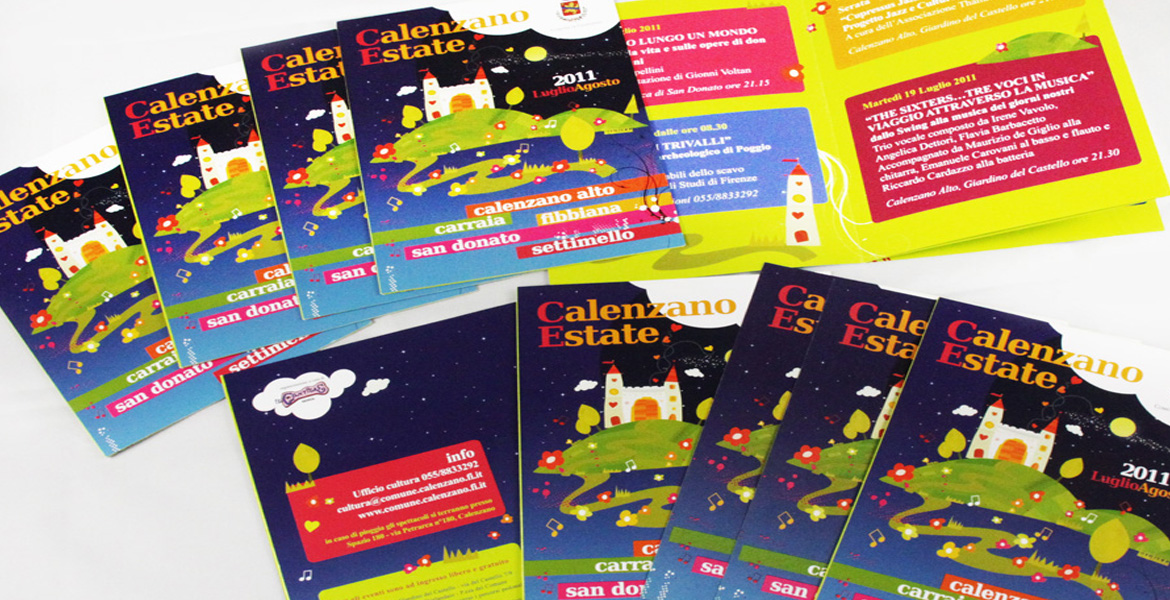 I mmagine coordinata per Festival Calenzano Estate. Realizzazione locandine, programma festival e grandi affissioni.
